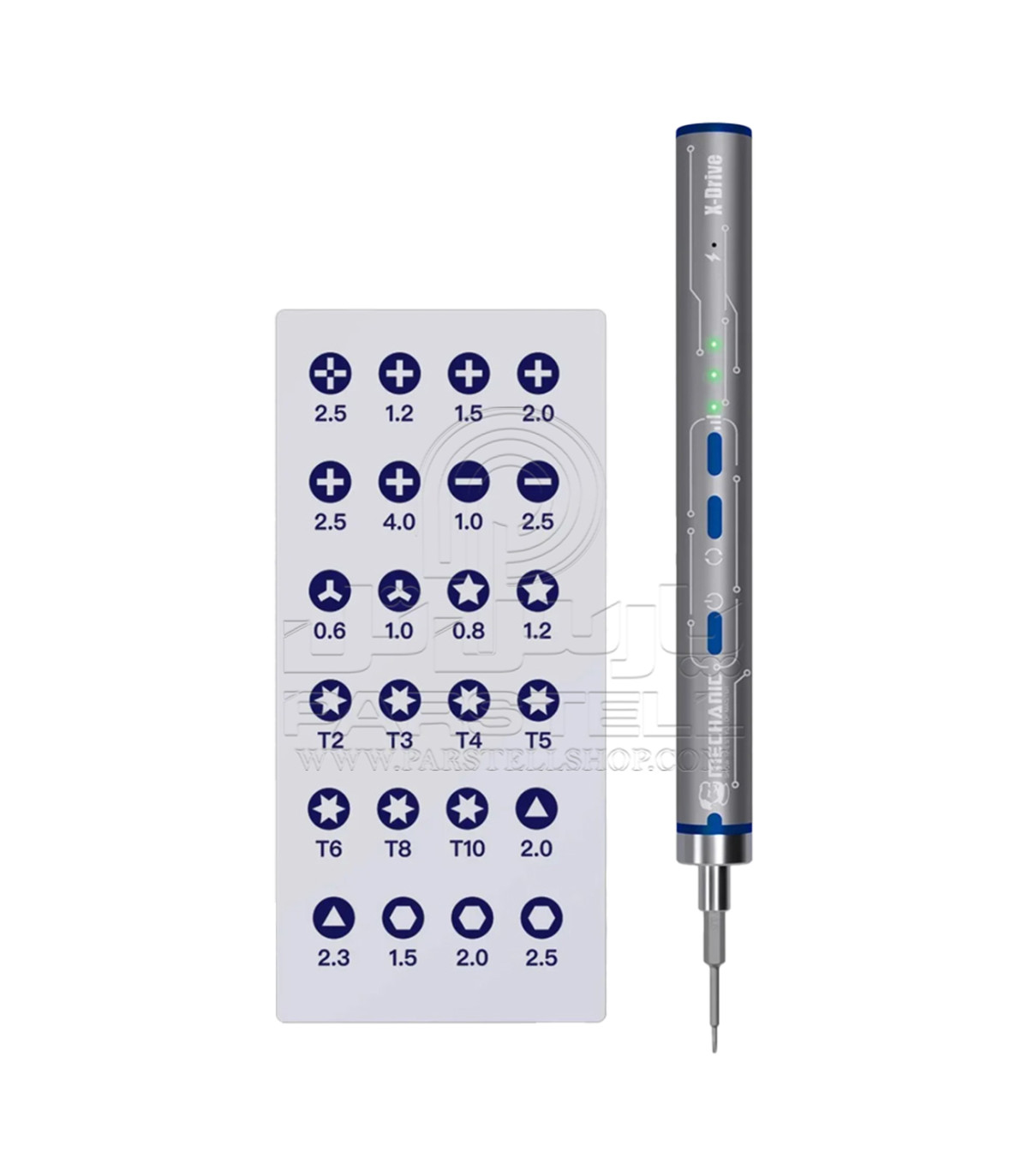 پیچ گوشتی از پایه ترین تجهیزات مورد نیاز برای تعمیرکاران می باشد که دلیل آن استفاده گسترده از پیچ گوشتی در حین تعمیر موبایل است. شما برای باز کردن پیچ های استفاده شده بر روی بدنه موبایل نیاز به پیچ گوشتی دارید. پیچ گوشتی ها بنا بر سایز پیچ و یا نوع پیچ انواع گوناگونی دارد. علاوه بر آن پیچ گوشتی ها بسته به نوع کارکرد شامل دو دسته پیچ گوشتی برقی و معمولی می شوند. پیچ گوشتی شارژی XDRIVE یکی از بهترین پیچ گوشتی های برقی موجود در بازار است که می تواند به دلیل کارایی عالی که دارد، به بهترین شکل ممکن نیاز شما را پاسخ دهد. این پیچ گوشتی شارژی دارای 24 عدد سری است.این محصول دارای بیت های فولادی S2 با کیفیت و سختی بالا تا 60HRC داراست.
