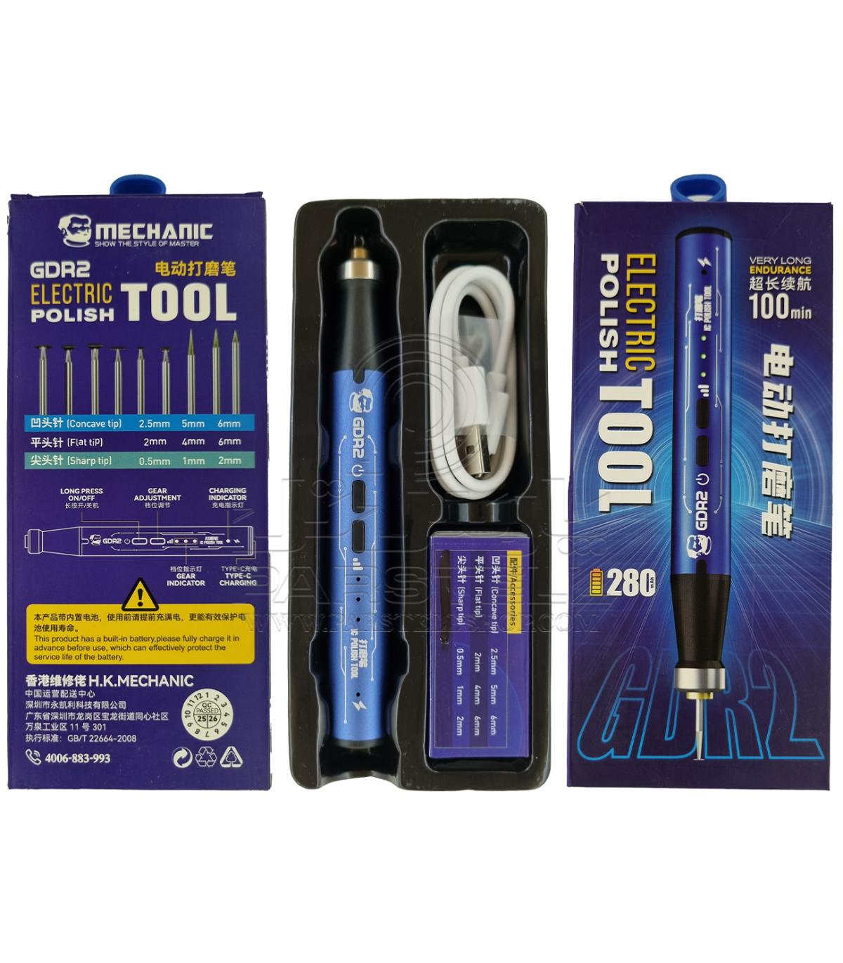 طراحی سر این دستگاه با راحتی جدا شده و میتوانید به راحتی با هر نوک که تمایل دارید آن را تعویض کنید تا هر اجزای الکترونیک که میخواهید را پولیش کنید. این محصول از تمرکز بسیار بالایی برخوردار بوده تا تعمیرکار بدون هیچ نگرانی روی اجزای حساس الکترونیک استفاده کند.علیرغم اندازه کوچک آن، این دستگاه عملکرد و قدرت بالایی دارد و با 37000 دور بر ثانیه هر برد یا اجزای ریز الکترونیک را پولیش کند. دستگاه به دارای سوکت تایپ C بوده و با دارای شارژ سریع است و با هر بار شارژ پر میتوانید حدود 4 ساعت به صورت مدام از آن استفاده کنید.